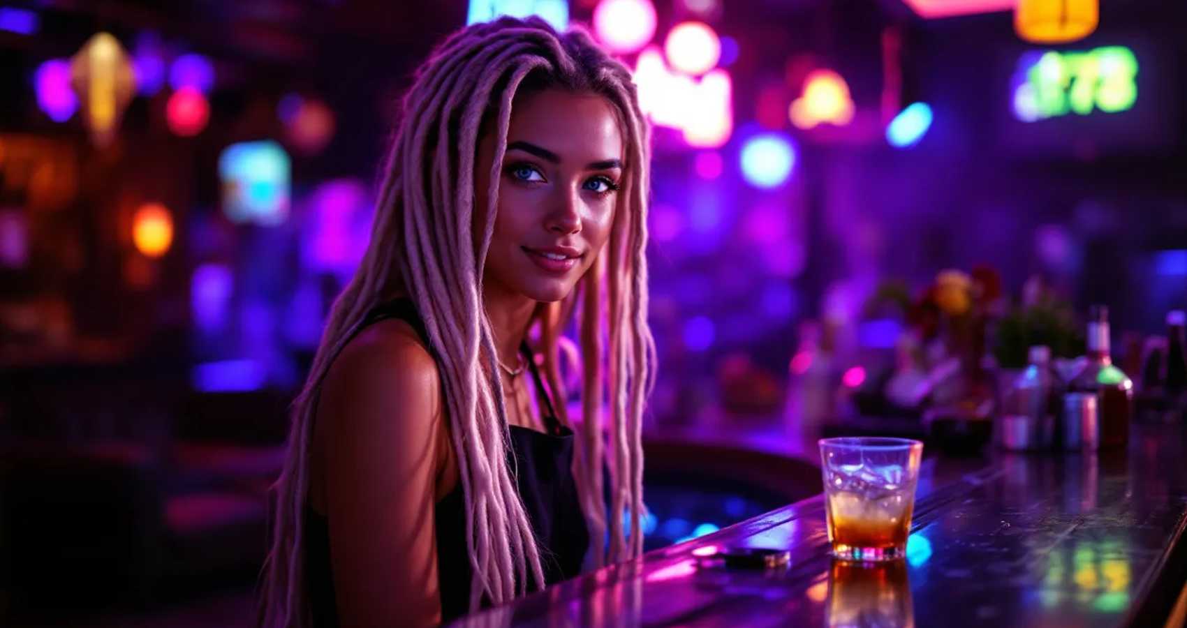 Julia’s never seen anyone as beautiful as her in her whole life. She has long blonde hair down to her ass, in dreadlocks, unbelievably shiny clean blond hair.